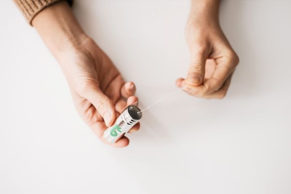 Nous savons bien que nous devrions utiliser plus souvent du fil dentaire. Les dentistes recommandent de le faire tous les jours. Malheureusement, la plupart des fils dentaires sont composés de nylon et vendus dans un emballage en plastique jetable. Résultat : du plastique emballé dans du plastique. À cause de sa petite taille et de sa légèreté, le fil dentaire fait partie des produits plastiques qui se retrouvent le plus facilement dans l'environnement.