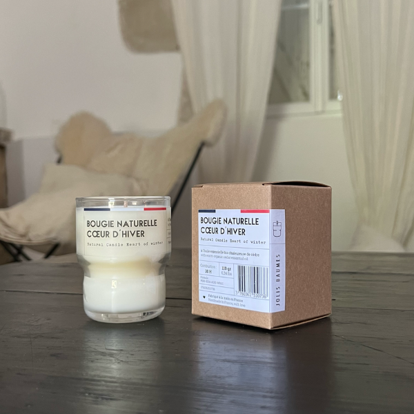En hiver, vous sentez votre clientèle est déprimée par les longs jours froids ? Faites leur redécouvrir les petits bonheurs de l'hiver en leur proposant notre bougie naturelle parfumée Cœur d'hiver.